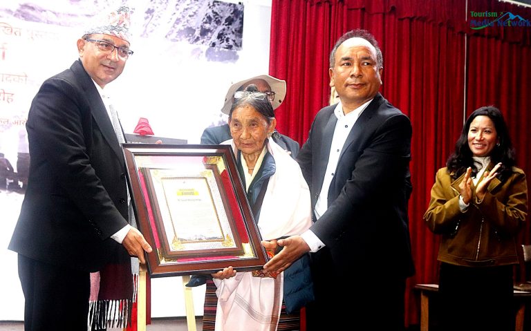 एनएमएका अध्यक्ष फुर गेल्जे शेर्पा र पोखरा महानगरपालिकाका मेयर धनराज आचार्यले संयुक्त रूपमा स्वर्गीय शेर्पाको परिवारका सदस्यलाई प्रशंसा पत्र हस्तान्तरण गरेका हुन् ।