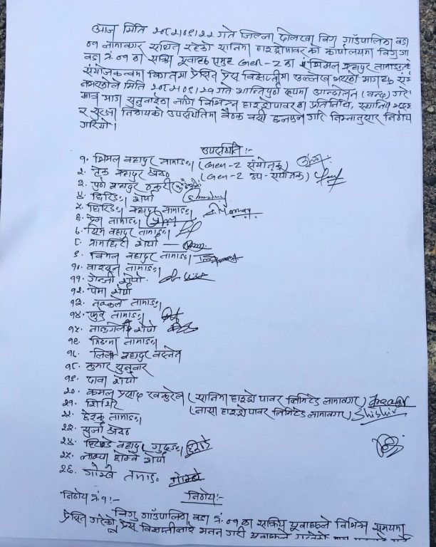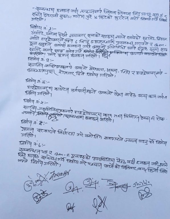 चरिकोट । दोलखाको विगु गाउँपालिका १ स्थित जेन्जी समूह र लामा बगर क्षेत्रमा सञ्चालित हाइड्रोहरुबीच ७ बुँदे सहमति भएको छ ।